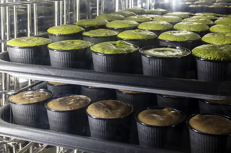 石段中腹に漂う「甘い香り」。しっとりとした生地と、とろける抹茶ガナッシュの「幸福感」。中には群馬県富岡市「餡日(アンディー)」の自家製白あん(ほんのり塩味)を使用、「和」のフォンダンショコラにこだわりました。店内工房にて1つずつ手作りしており、焼きたての美味しさ、香ばしさを提供したい、その想いから工房一体型店舗としました。